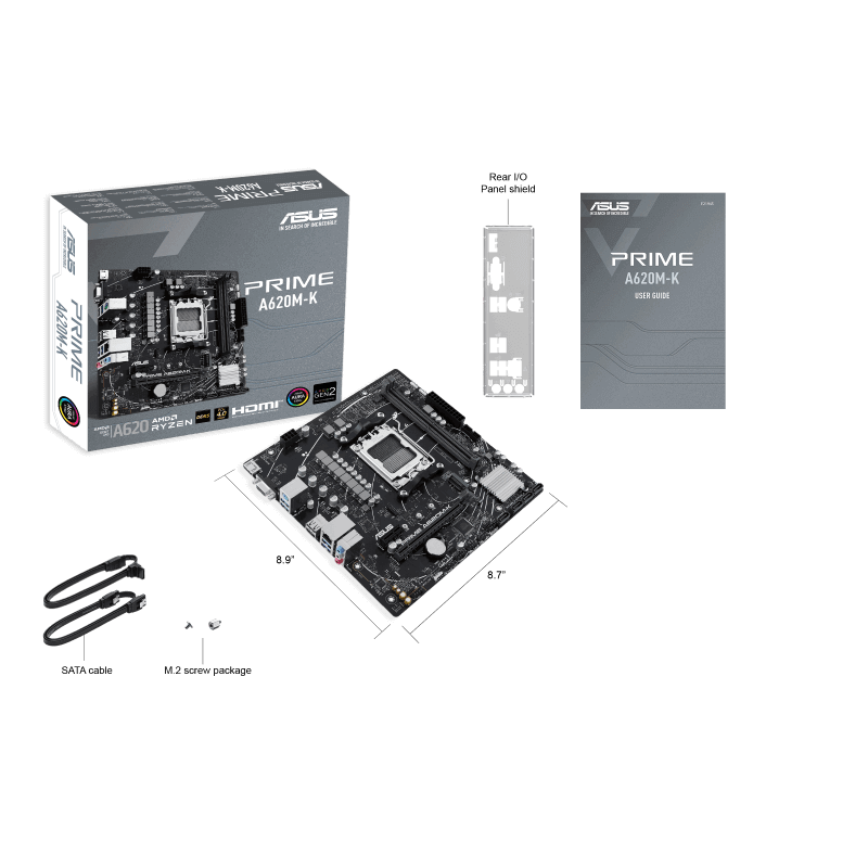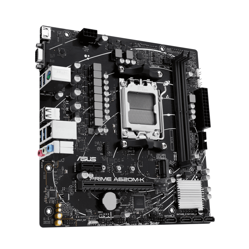 La carte mère ASUS PRIME A620M-K est parfaite pour les processeurs Ryzen™, avec DDR5, PCIe 4.0, Aura Sync et suppression de bruit AI, idéale pour les PC gaming et AI.
