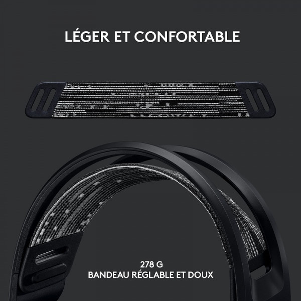 - Personnalisation RGB : Créez des effets lumineux personnalisés pour assortir le casque à votre équipement ou à votre style de jeu via Logitech G HUB.