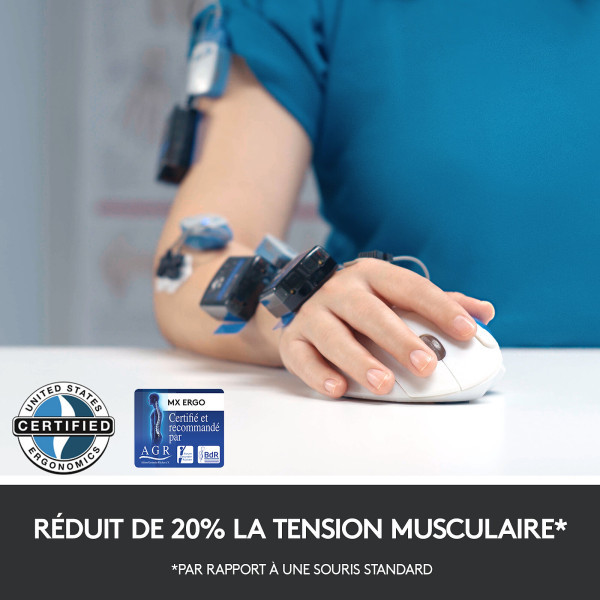 Logitech MX Ergo : souris ergonomique, résolution 440 dpi, 8 boutons, design ajustable, confort amélioré, garantie 12 mois.