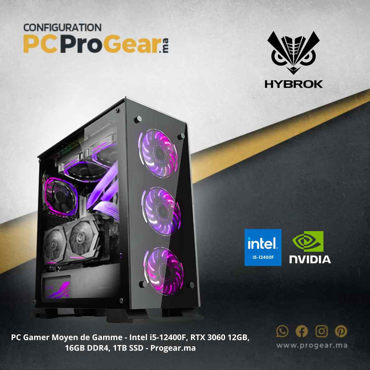 PC Gamer Moyen de Gamme avec processeur Intel i5-12400F, carte graphique RTX 3060 12GB, 16GB DDR4, et SSD NVMe 1TB. Parfait pour le gaming intense et multitâche, avec alimentation 650W fiable et boîtier ARGB stylé. Optimisé pour une expérience fluide et rapide. Disponible au meilleur prix Pc Gamer Maroc.