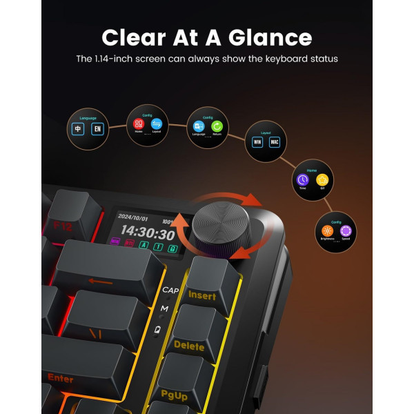 Spécifications Techniques : Redragon K708 Pro LCD Wireless (Gradient Gray)