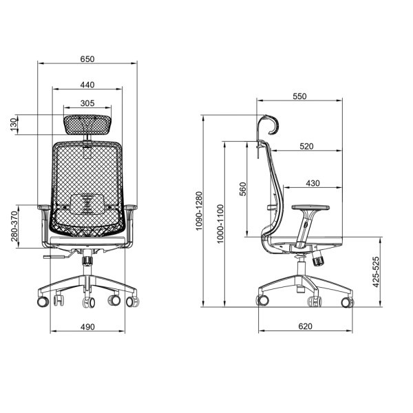 • Accoudoirs 1D réglables : Ajustez facilement la hauteur des accoudoirs pour un confort personnalisé.