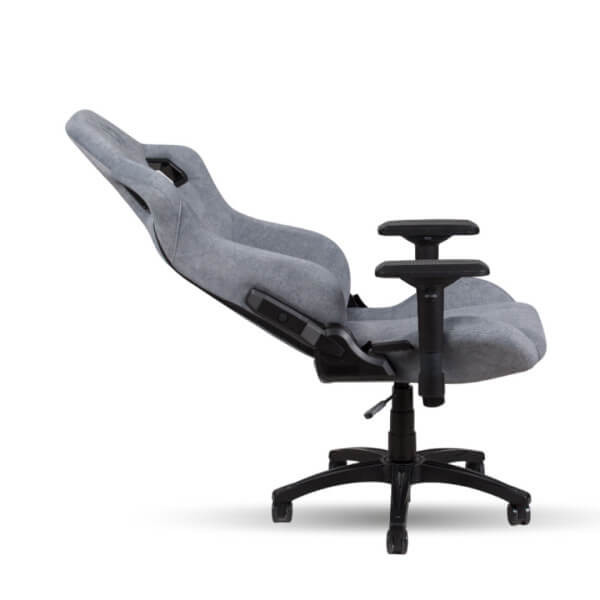 Skillchairs SC5 Vilen Gray : chaise gamer tissu respirant, accoudoirs 4D, inclinaison jusqu’à 155°, confort ergonomique avec coussins lombaire et cervical, idéale pour sessions gaming et télétravail prolongées.