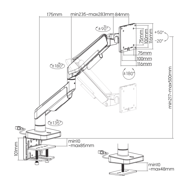 • Bras orientable et inclinable – ajustez hauteur, angle et orientation pour un confort optimal