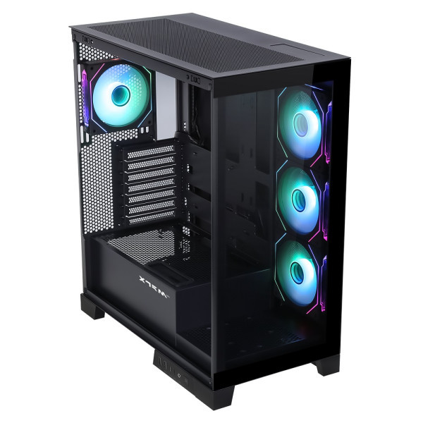 Le XTRMLAB SHADOW (Black) est un boîtier PC moyen tour élégant avec panneau en verre trempé, 4 ventilateurs ARGB inclus et compatibilité ATX, parfait pour des configurations gaming performantes et esthétiques.